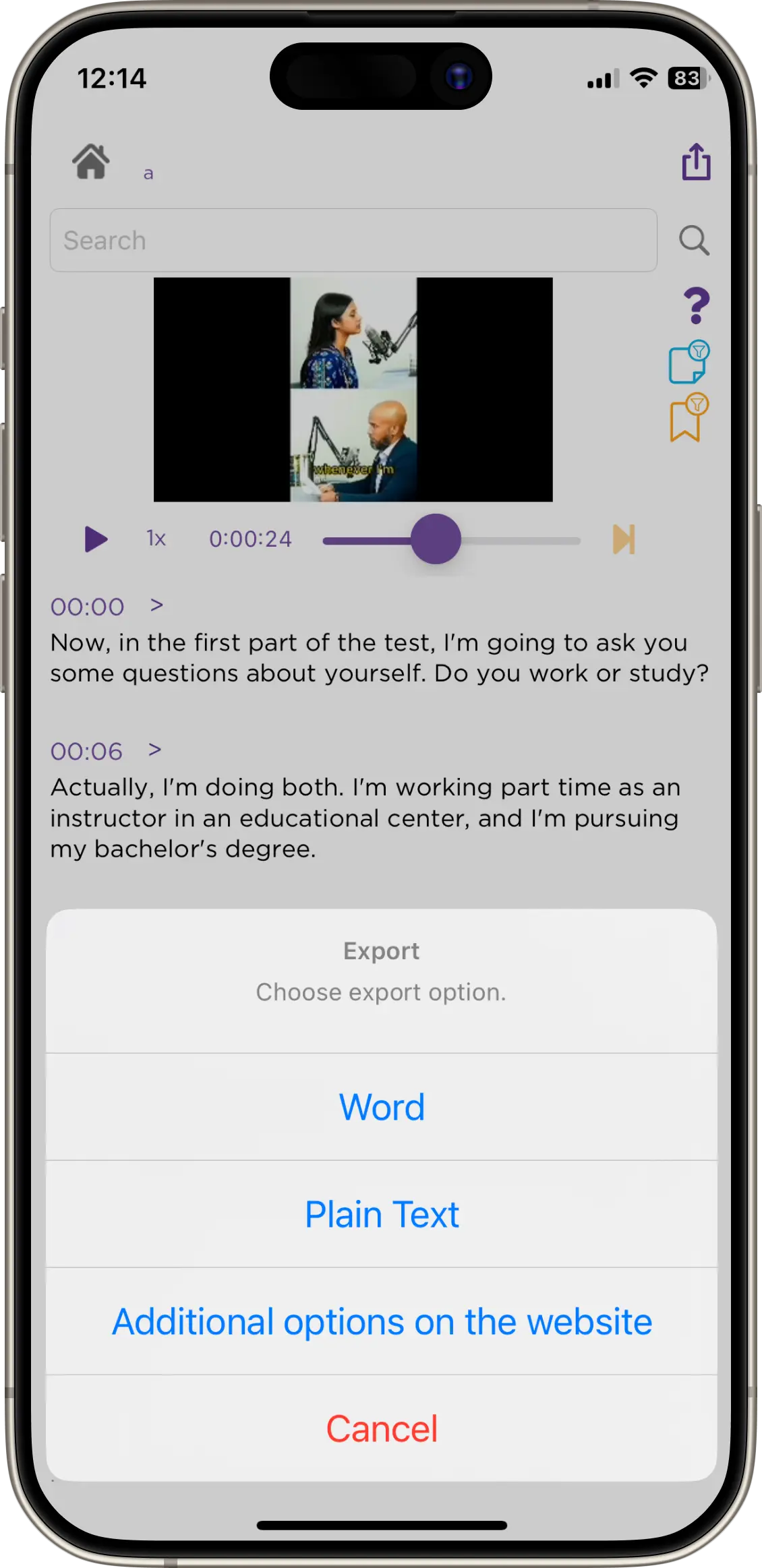 6.Export transcripts effortlessly in Word, plain text, or more formats.