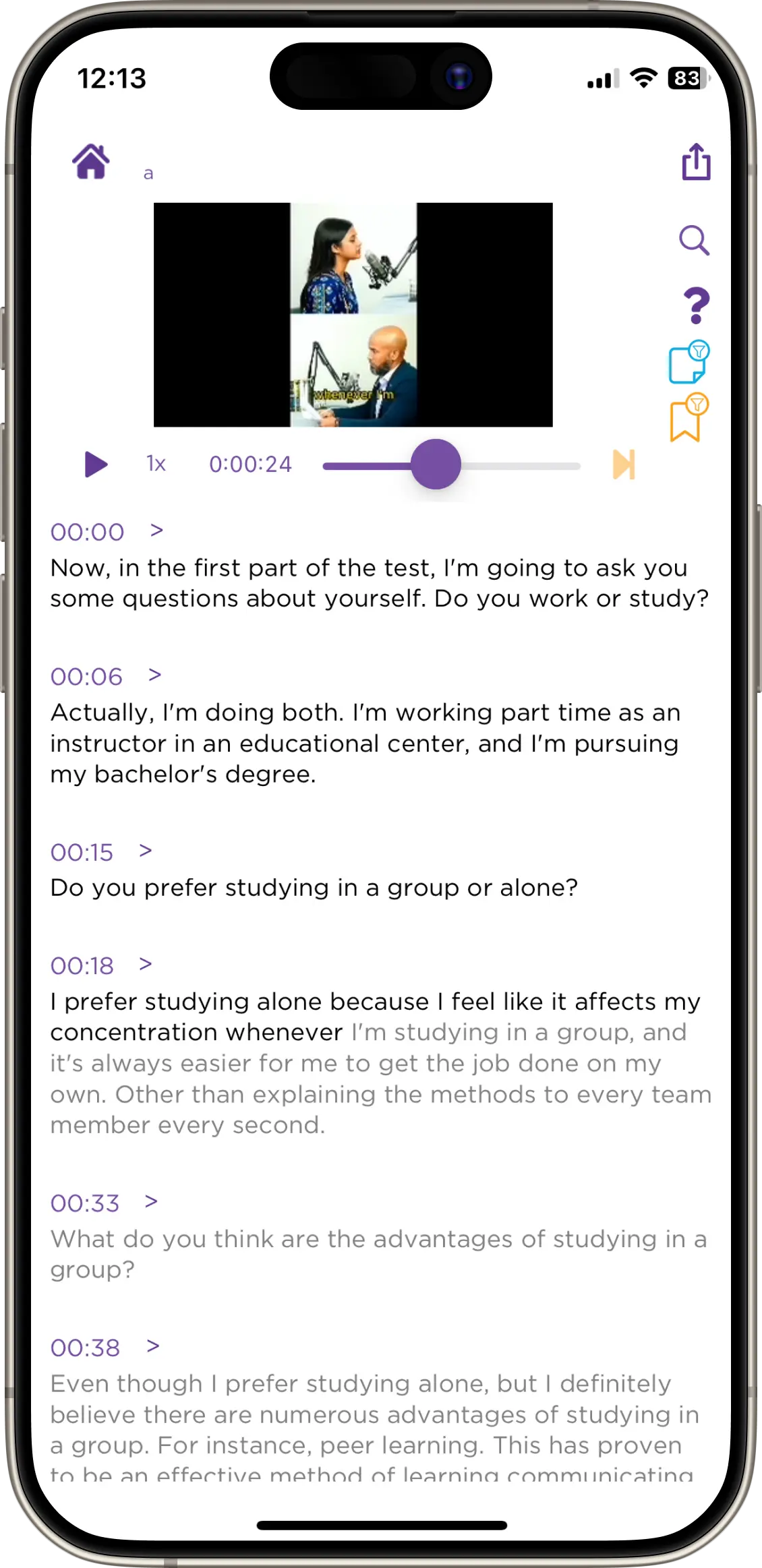 5.View real-time AI transcription with synchronized playback and editing tools.