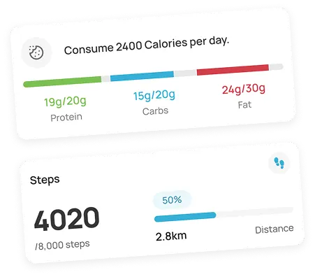 Combines client statistics like calories, step, weight, sleep, water intake and progress metrics into a single dashboard for quick analysis and personalised training adjustments.