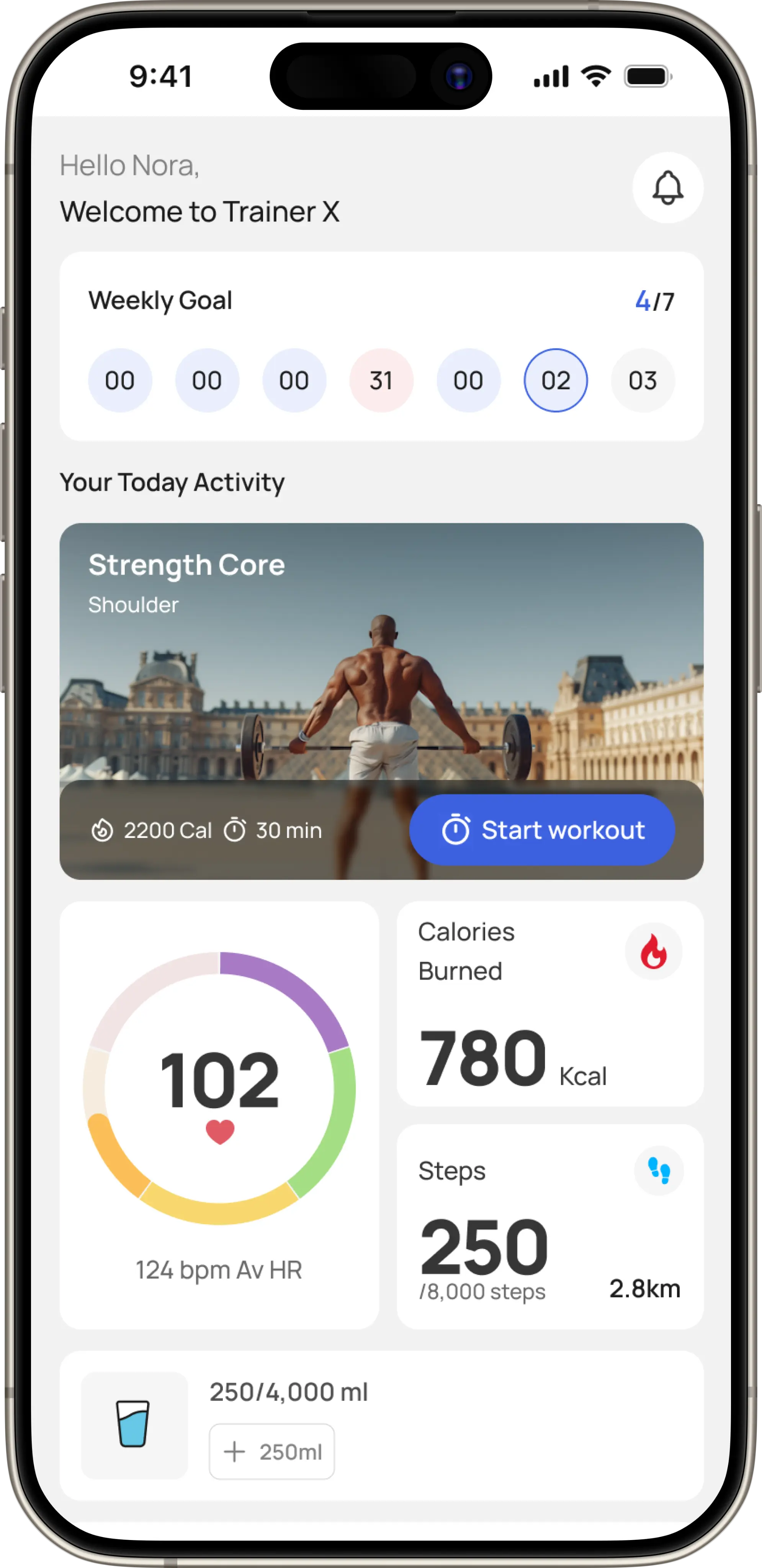 Wireframes evolved into vibrant, intuitive screens that visualize progress and guide workouts.