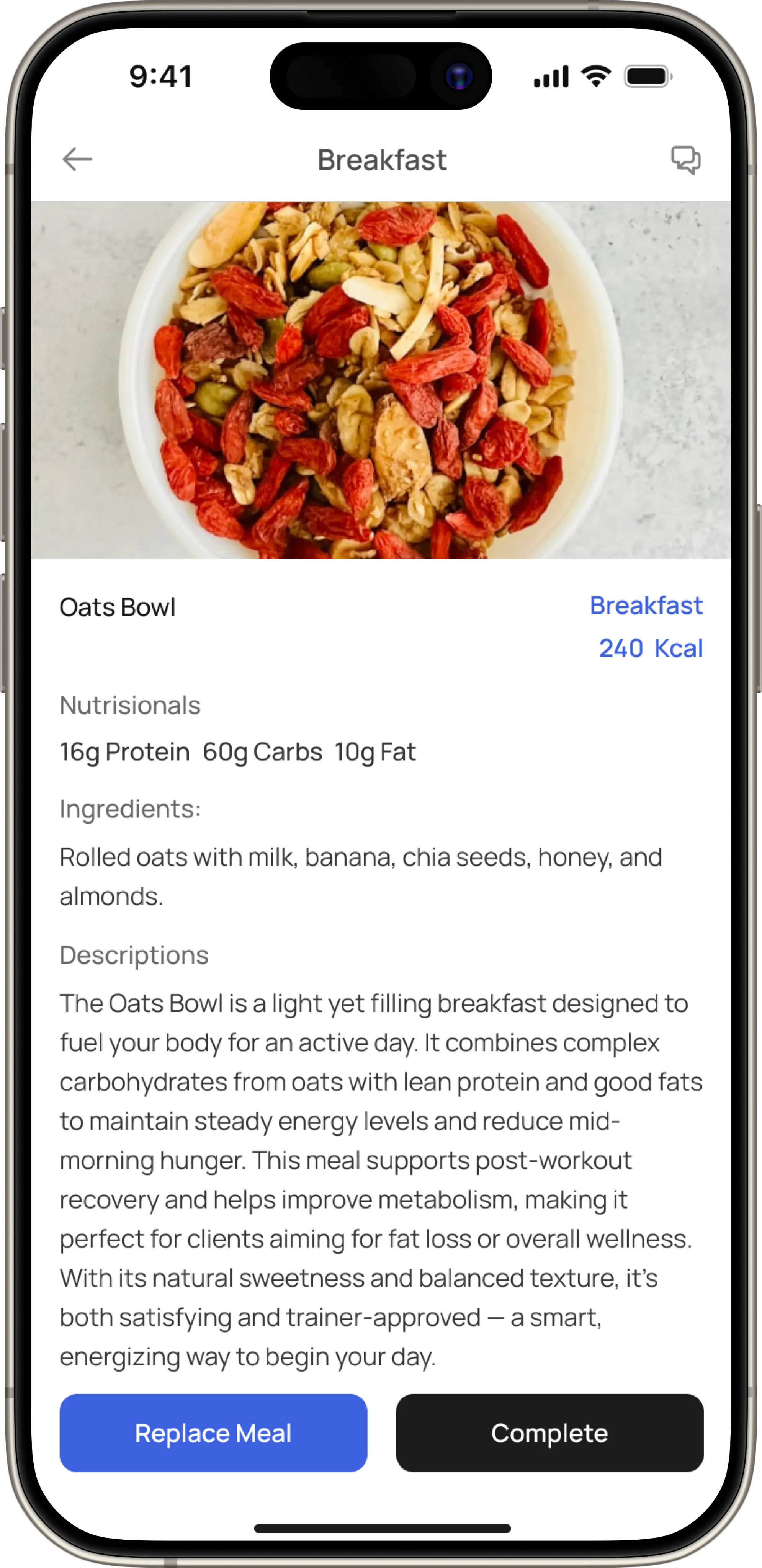 Enables trainers to customise meal for client , view and modify client meal schedules, ensuring balanced nutrition that aligns with fitness goals and workout intensity.