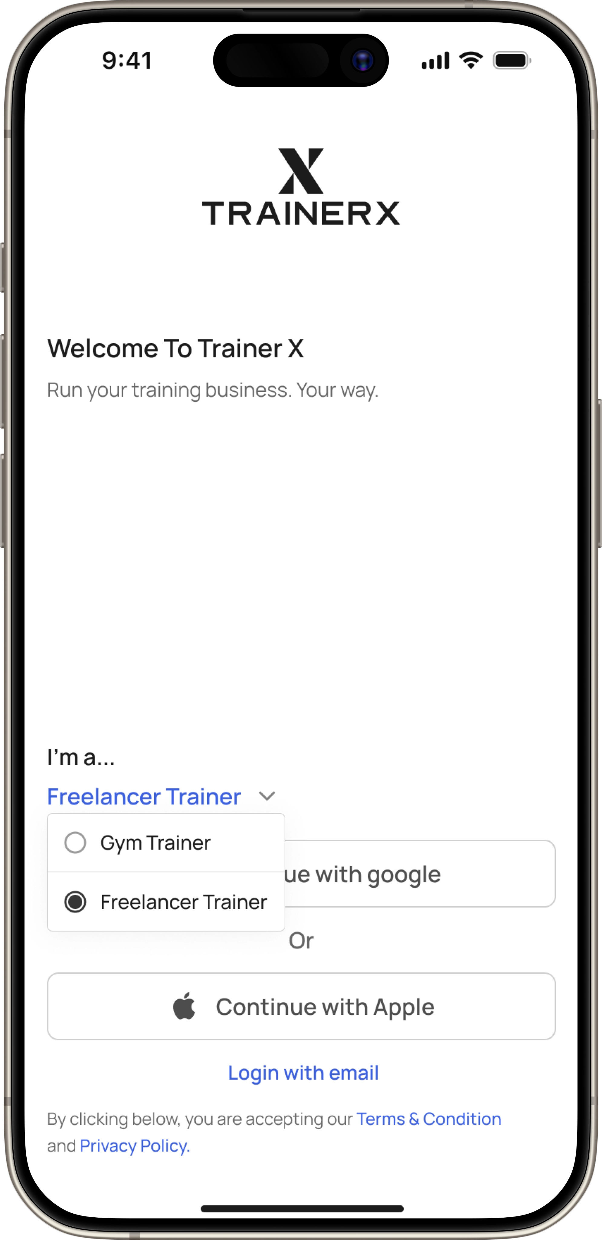 TRAINERX is a personalized fitness and training app designed to connect clients and trainers through data-driven insights, real-time communication, and customized workout plans.