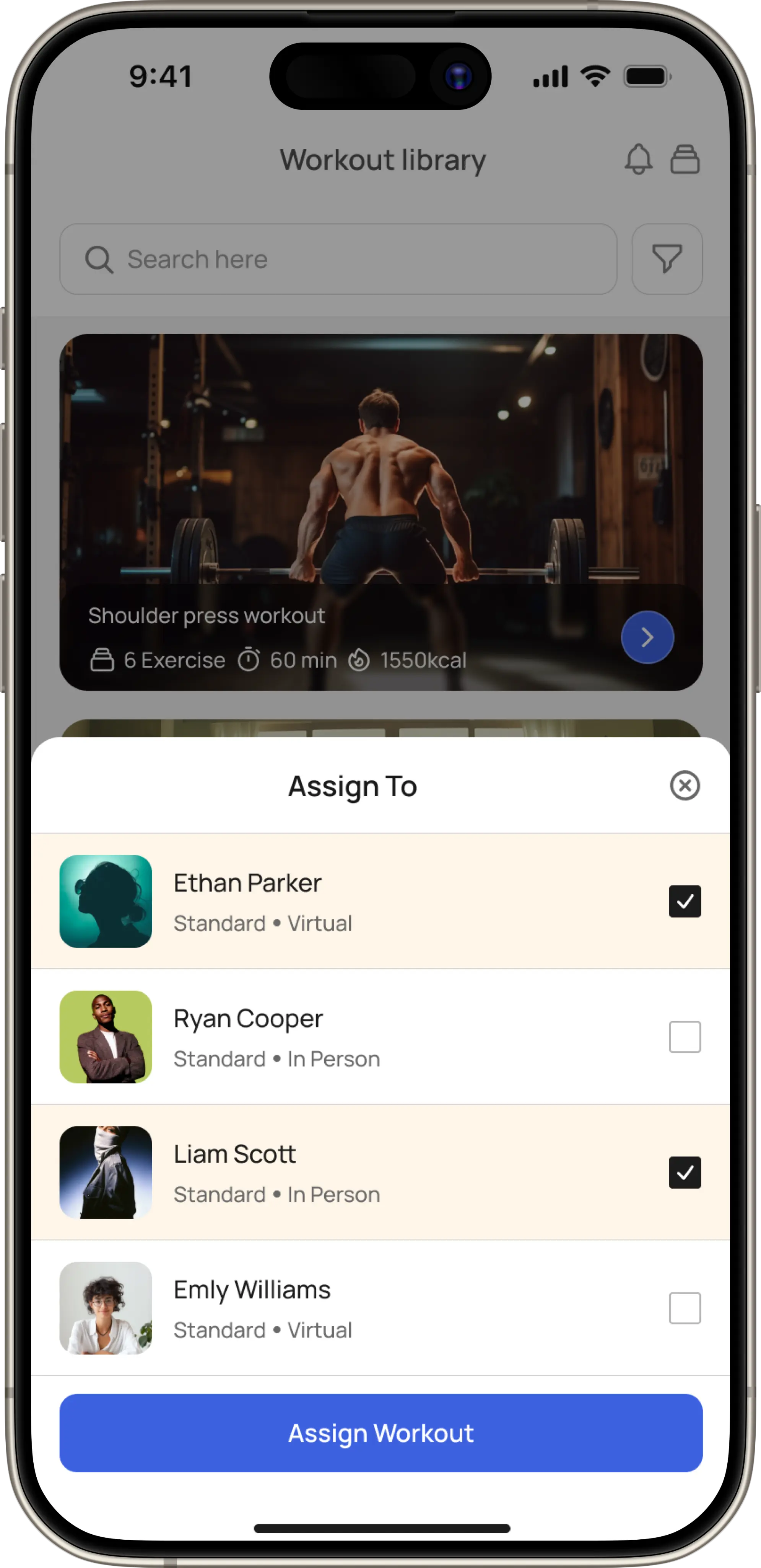 Lets freelancers browse available workouts, customize them, and directly assign training routines to their clients in just a few steps.